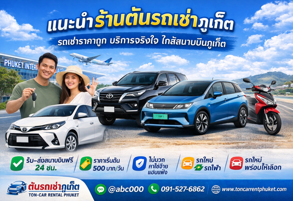 หากพูดถึงการท่องเที่ยวภูเก็ต สิ่งหนึ่งที่ขาดไม่ได้คือ “พาหนะส่วนตัว” เพราะสถานที่ท่องเที่ยวของภูเก็ตกระจายตัวอยู่หลายโซน ไม่ว่าจะเป็นชายหาดชื่อดัง จุดชมวิว หรือคาเฟ่ลับต่าง ๆ การเช่ารถจึงเป็นทางเลือกที่ทั้งสะดวก ประหยัดเวลา และคุ้มค่ากว่าการเรียกรถตลอดทริป และหนึ่งในร้านรถเช่าที่ได้รับความนิยมอย่างต่อเนื่องจากทั้งคนไทยและชาวต่างชาติ คือ ร้านต้นรถเช่าภูเก็ต (Ton Car Rental Phuket) ร้านรถเช่าท้องถิ่นคุณภาพ ที่เน้น “ราคาถูกจริง บริการตรงไปตรงมา และดูแลลูกค้าเหมือนคนในครอบครัว” ทำความรู้จักร้านต้นรถเช่าภูเก็ต ร้านต้นรถเช่าภูเก็ตก่อตั้งขึ้นจากแนวคิดง่าย ๆ คือ “อยากให้คนมาเที่ยวภูเก็ตได้เช่ารถในราคายุติธรรม ไม่โดนโกง และไม่เจอค่าใช้จ่ายแอบแฝง” ร้านดำเนินกิจการมาแล้วกว่า 10 ปี มีประสบการณ์ตรงด้านการให้บริการรถเช่าในพื้นที่ภูเก็ต เข้าใจปัญหาของลูกค้าเป็นอย่างดี ไม่ว่าจะเป็นเรื่องราคา มัดจำ ประกัน หรือขั้นตอนรับ–คืนรถ จุดเด่นสำคัญคือ ร้านตั้งอยู่ ฝั่งตรงข้ามสนามบินนานาชาติภูเก็ต พร้อมบริการ รับ–ส่งสนามบินฟรีตลอด 24 ชั่วโมง ทำให้ลูกค้าที่บินมาถึงสามารถรับรถได้ทันที ไม่ต้องเสียเวลาหารถหรือรอคิวนาน รถให้เลือกหลากหลาย ครบทุกความต้องการ ร้านต้นรถเช่าภูเก็ตมีรถให้เลือกหลายประเภท ครอบคลุมทุกไลฟ์สไตล์การเดินทาง เช่น รถทุกคันผ่านการตรวจเช็กสภาพก่อนส่งมอบ พร้อมใช้งานจริง…